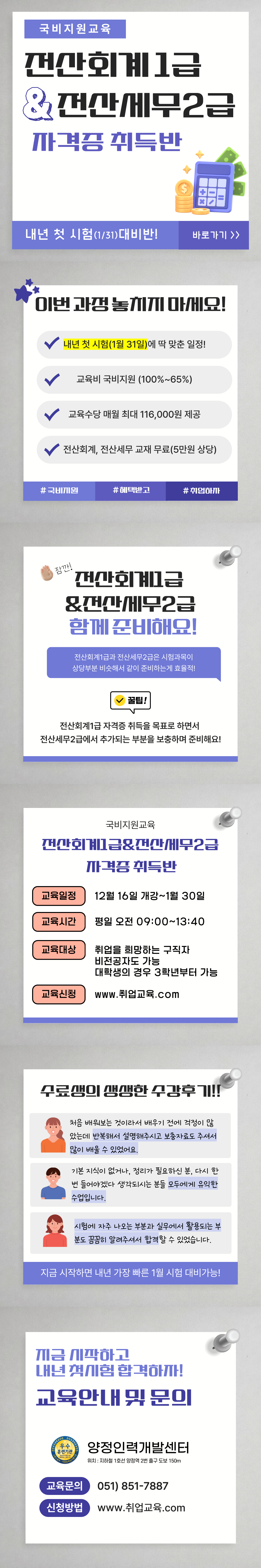 📢 회계사무원 양성(전산회계&전산세무 자격증 취득)
