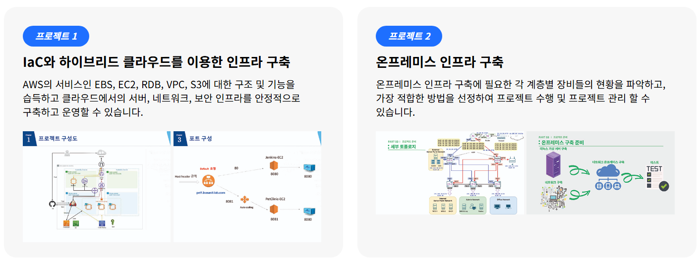 - 4개월 : AWS 클라우드, 온프레미스 인프라