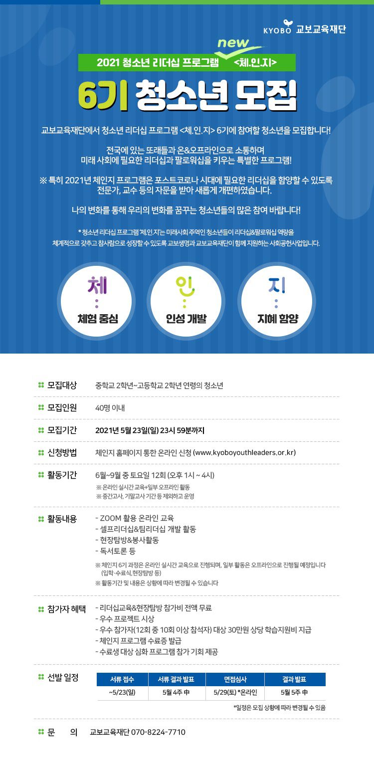 교보 청소년 리더십 프로그램 체인지 참가자 모집