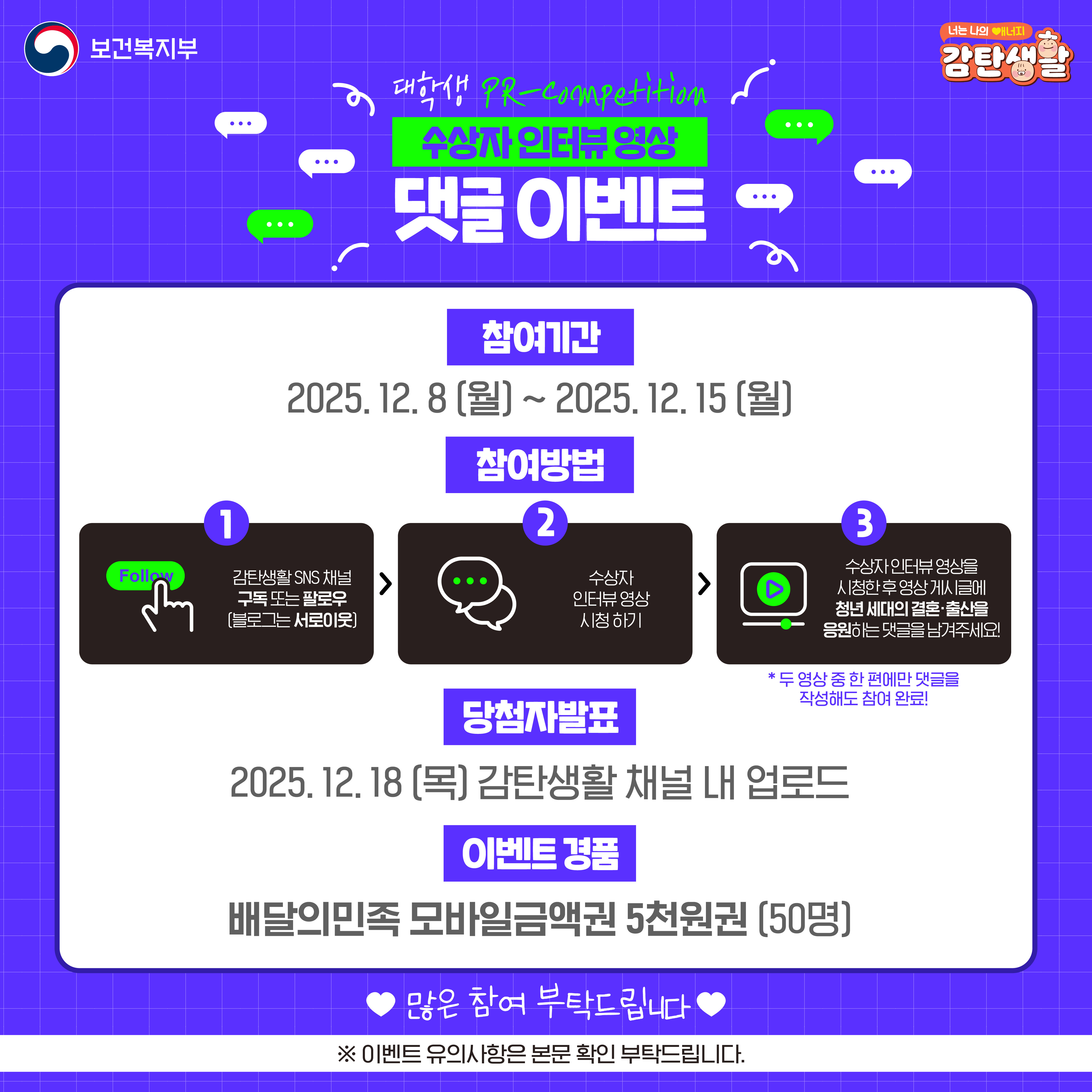#보건복지부 #이벤트 #감탄생활 #저출생 #결혼 #연애 #2030 #청년 #미래세대 #가족 #사랑 #육아 #출산 #육아 #인터뷰 #인터뷰영상 #애너지 #캠페인 #저출생캠페인 #댓글이벤트 #이벤트 #경품 #경품증정