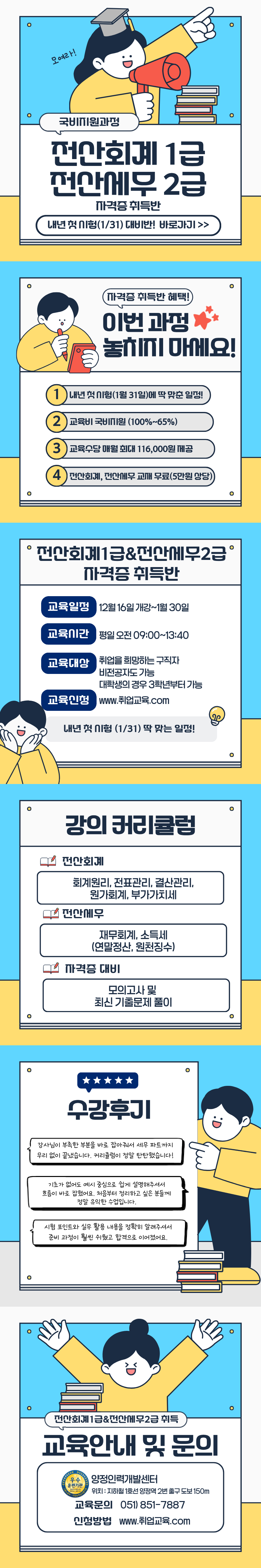 📢 회계사무원 양성(전산회계&전산세무 자격증 취득)