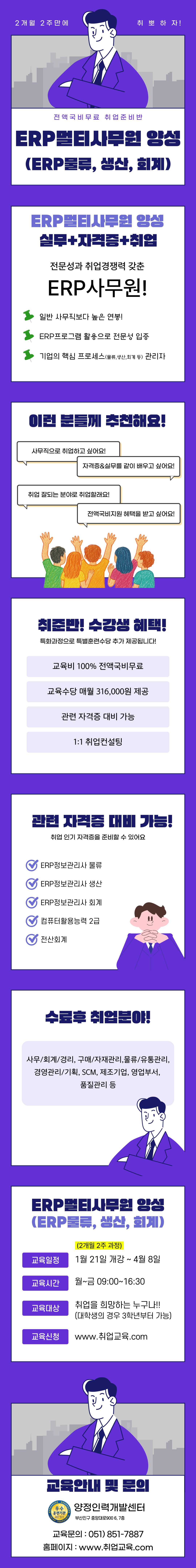 - 과정명 : 스마트 해양 물류관리 실무(ERP멀티사무원 양성)
