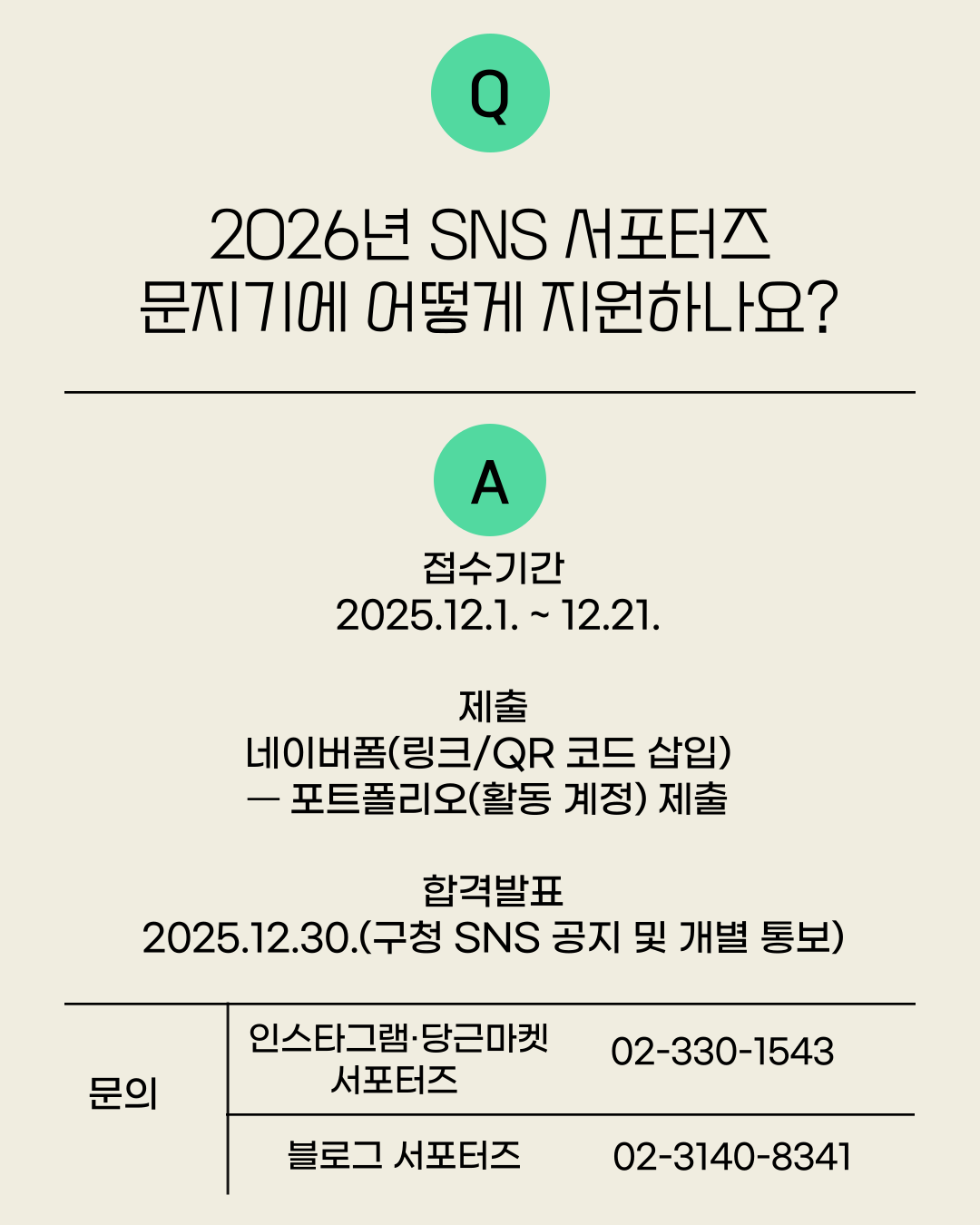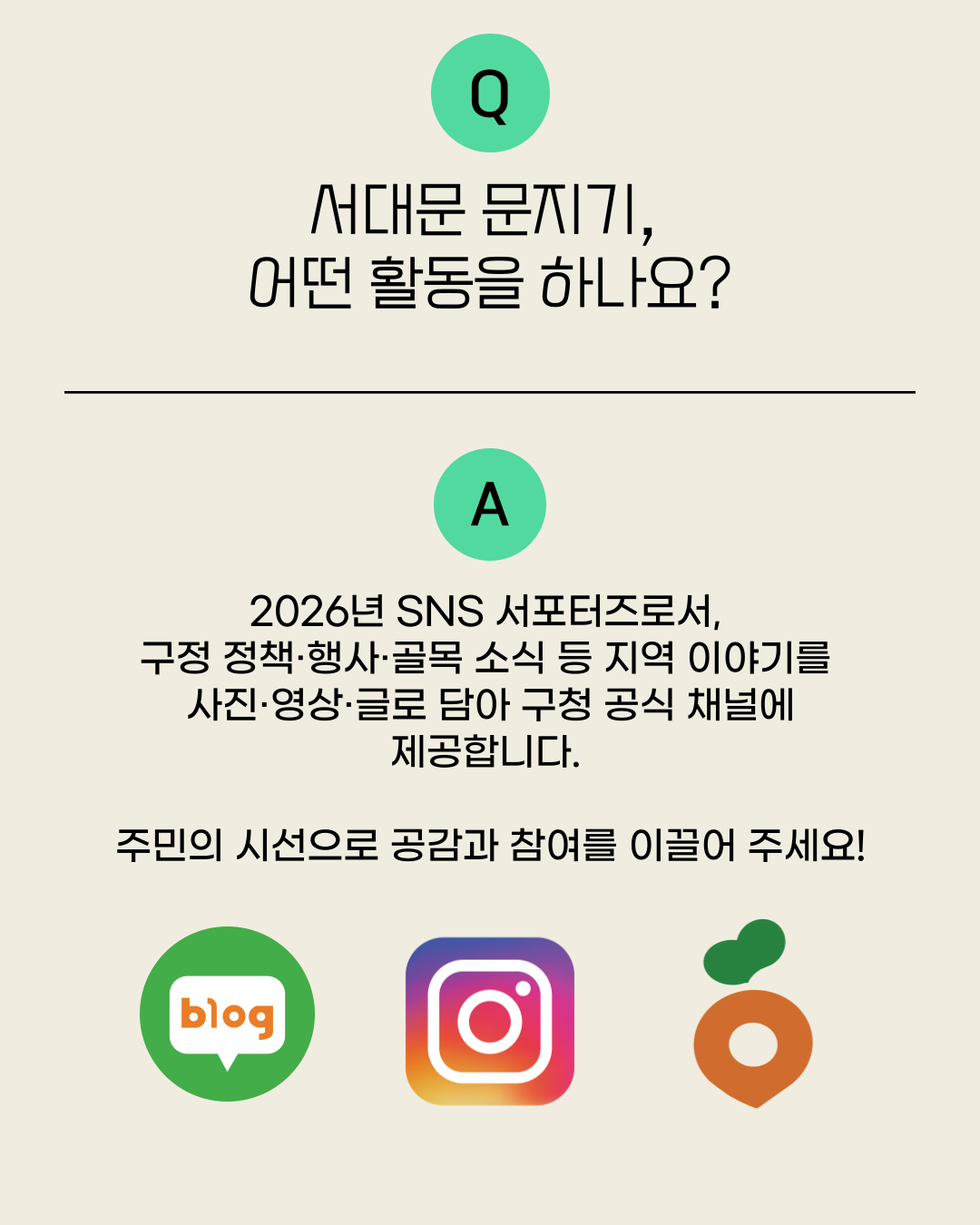 📢2026년 서대문 문지기(SNS 서포터즈)를 모집합니다! 🌟