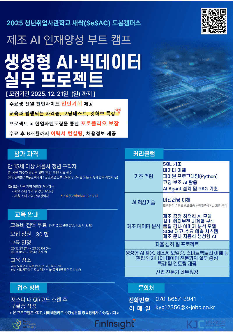 [제조AI인재양성 부트캠프 - 생성형AI 빅데이터 실무프로젝트 ] 수강생을 모집합니다!