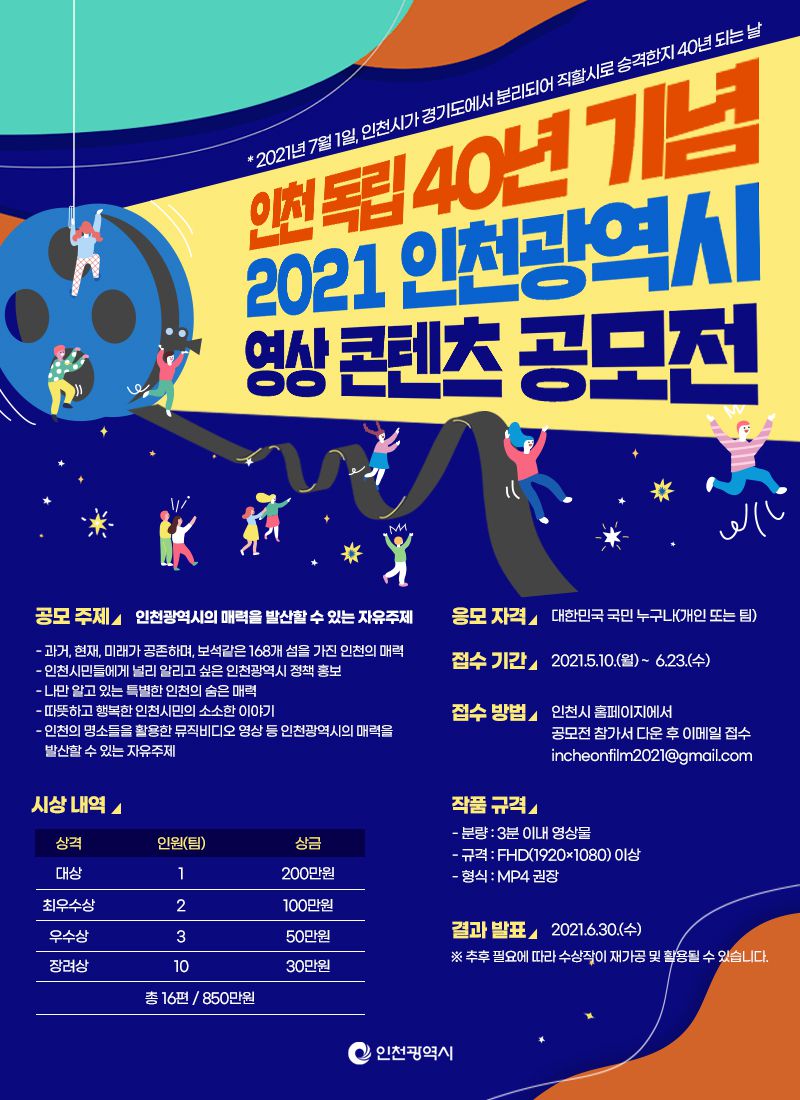 ㅇ 인천시 영상 공모전 전용 이메일 : incheonfilm2021@gmail.com
