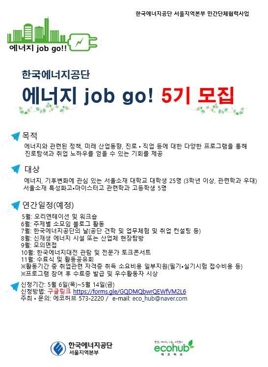 에너지와 관련된 정책, 미래 산업동향, 진로•직업 등에 대한 다양한 프로그램을 통해진로탐색과 취업 노하우를 얻을 수 있는 기회를 제공