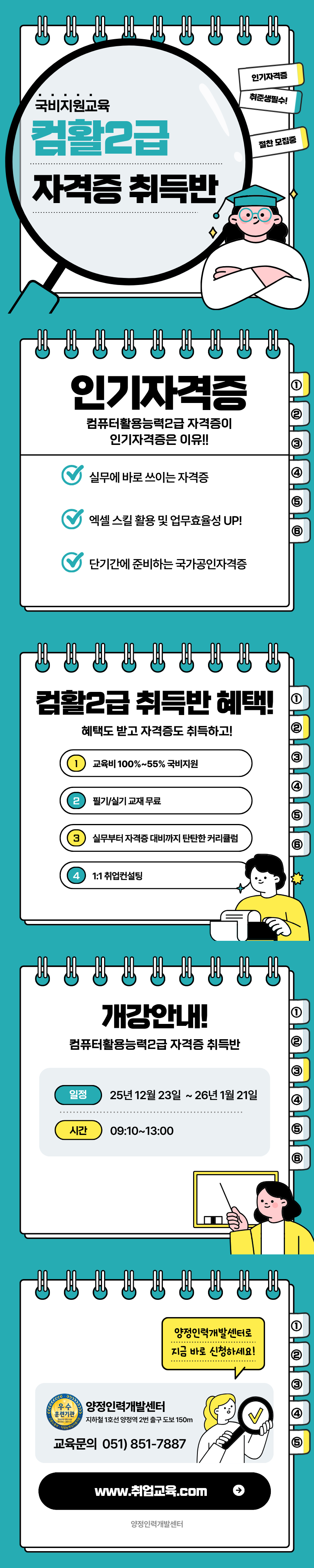 [국비지원/20일 완성] 컴퓨터활용능력2급 자격증 단기 대비반(필기/실기)