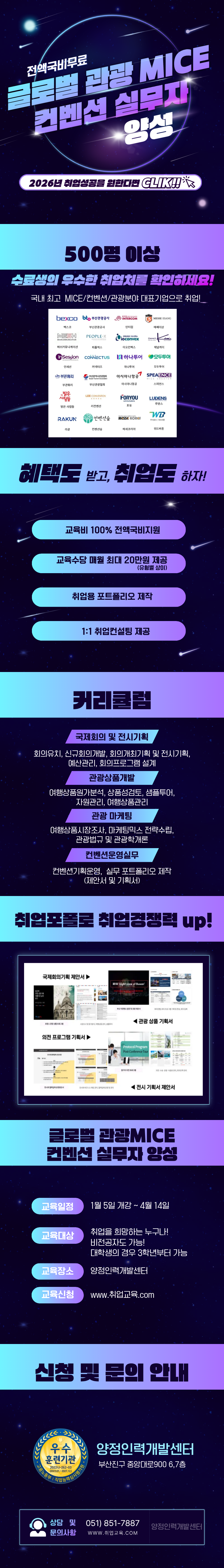 🚨이제는, 관광·MICE컨벤션 전문가로 양정인력개발센터에서 시작하세요!