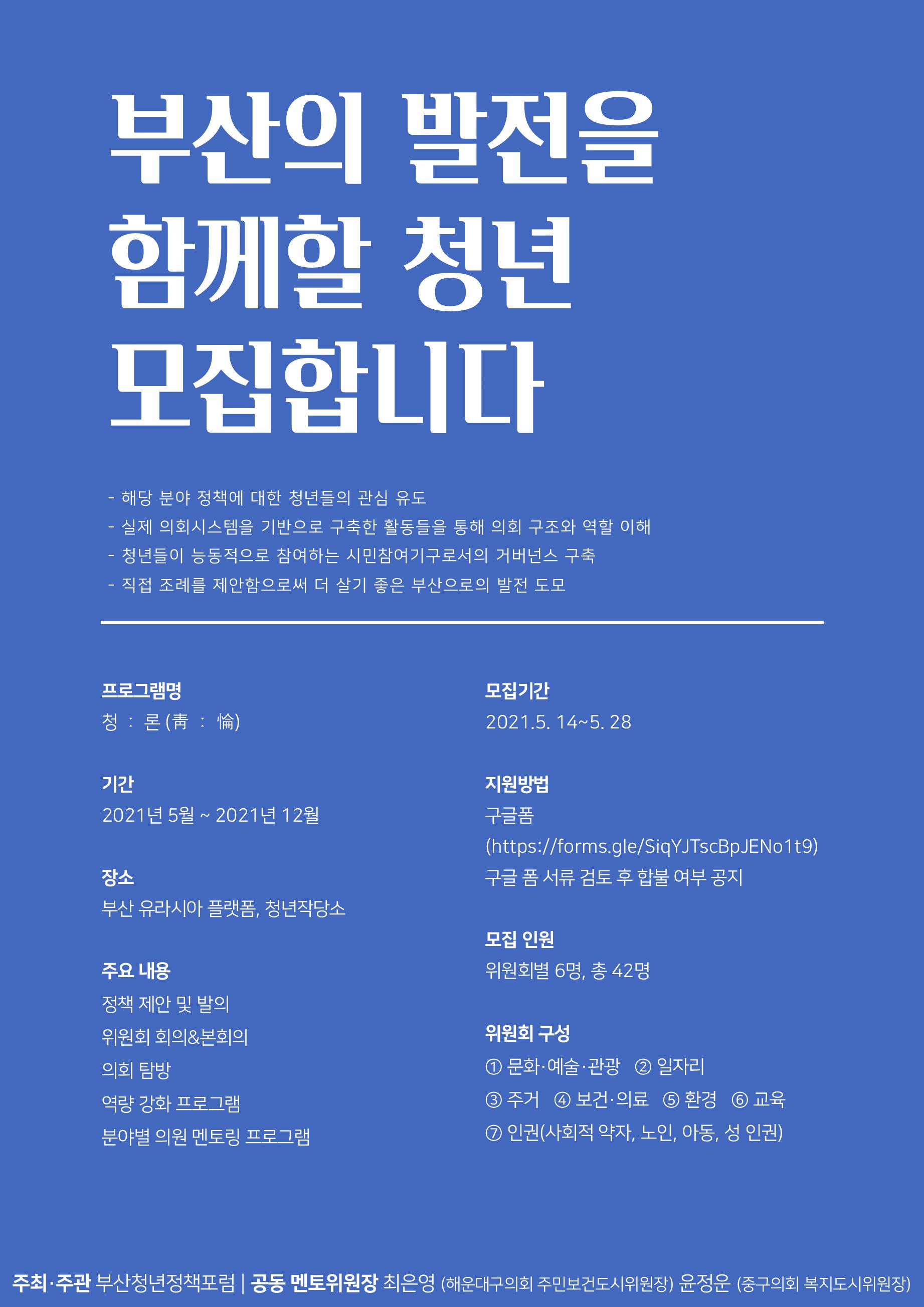 부산청년의회 청론 위원 모집