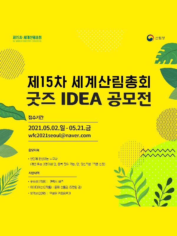 - 산림분야 최대의 국제행사, 6년마다 열리는 산림올림픽 「제15차 세계산림총회」를 홍보 할 수 있는 굿즈 아이디어