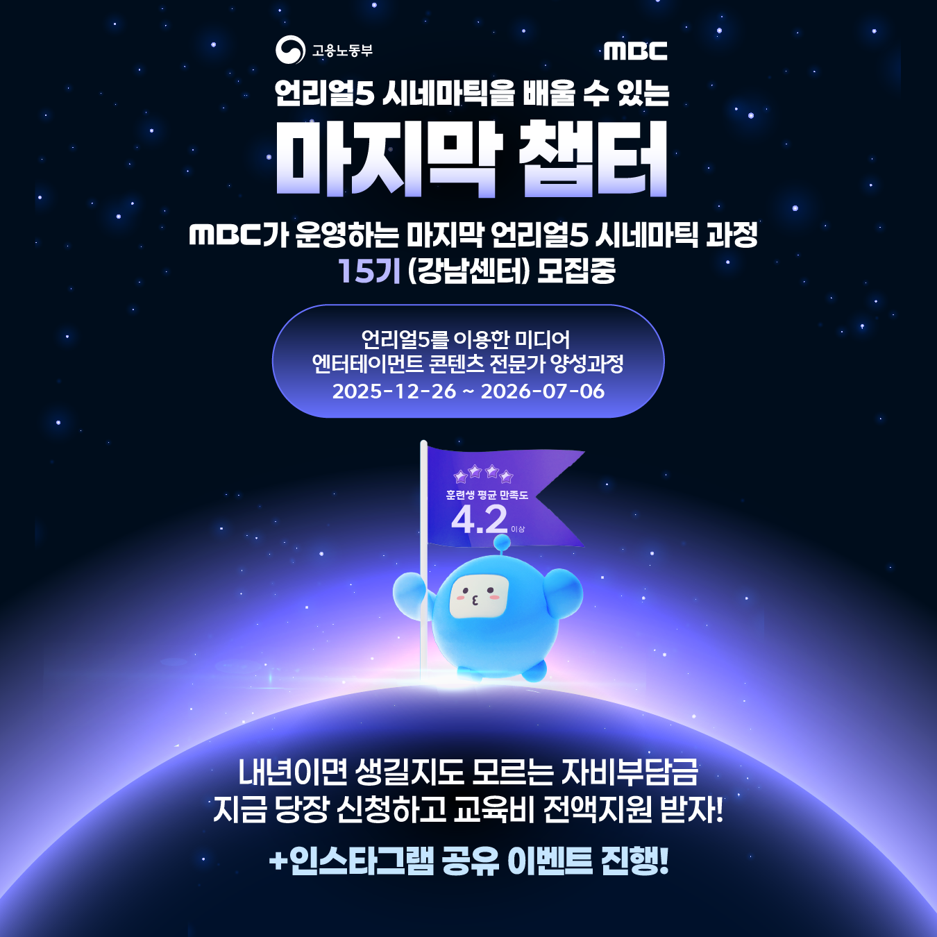 <MBC HRD 센터 > 언리얼5를 이용한 미디어엔터테인먼트 콘텐츠 전문가 양성 과정 모집!