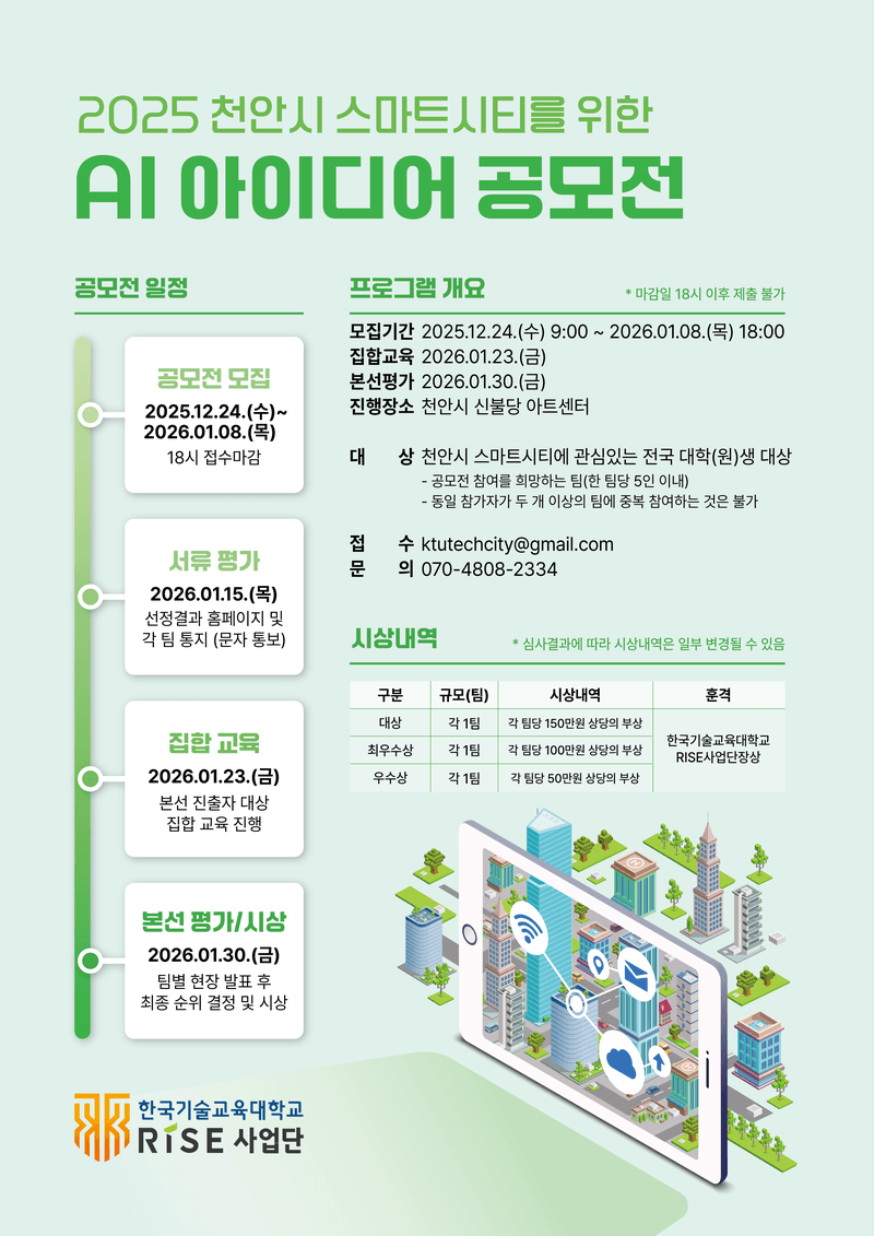『2025 천안시 스마트시티를 위한 AI 아이디어 공모전』 참가자를 모집합니다!