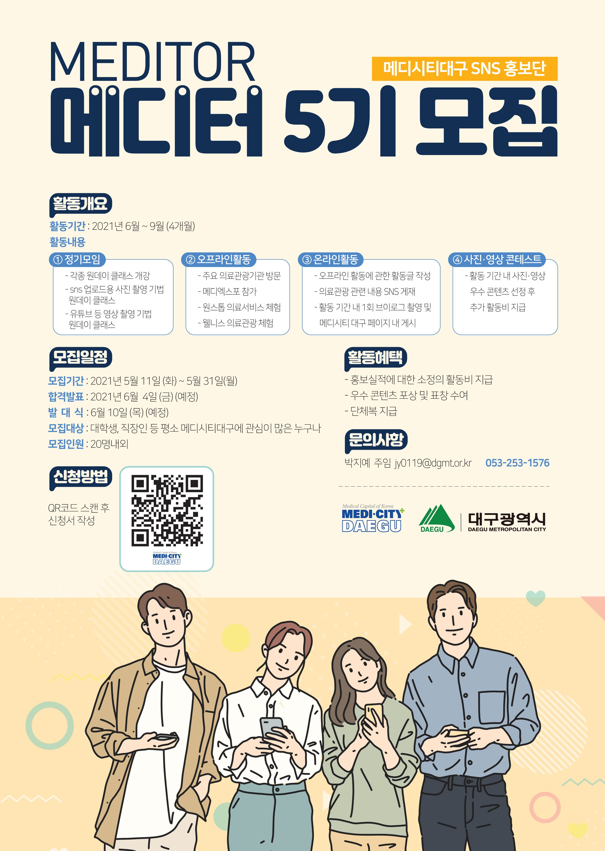 대한민국 의료특별시 '메디시티대구'에서 5기 SNS 홍보단을 모집합니다.