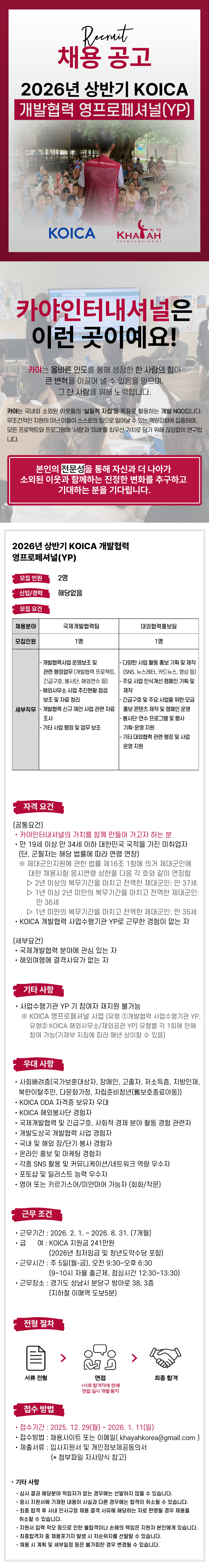 [카야인터내셔널] 2026년 상반기 KOICA 개발협력 영프로페셔널(YP) 채용공고
