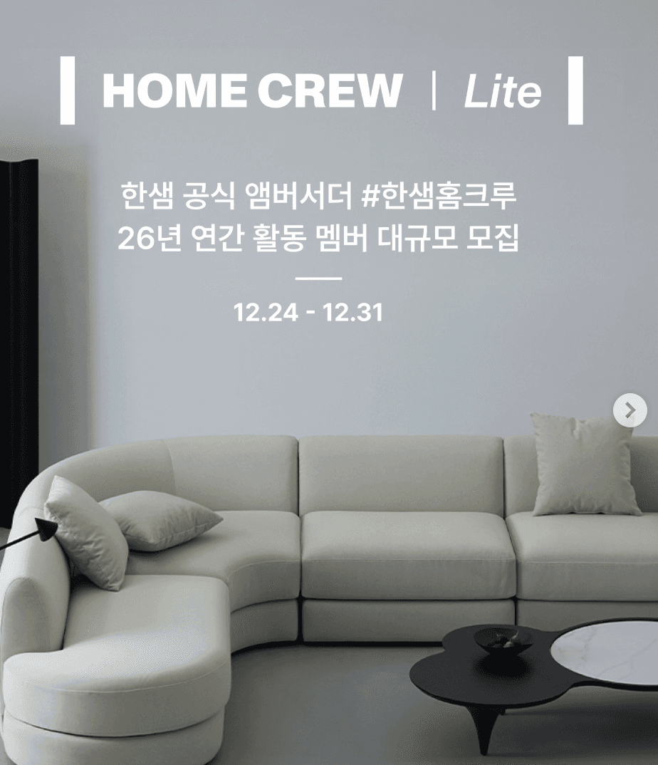 '2026년 '한샘 홈크루 Lite'에 꼭 지원해보세요.