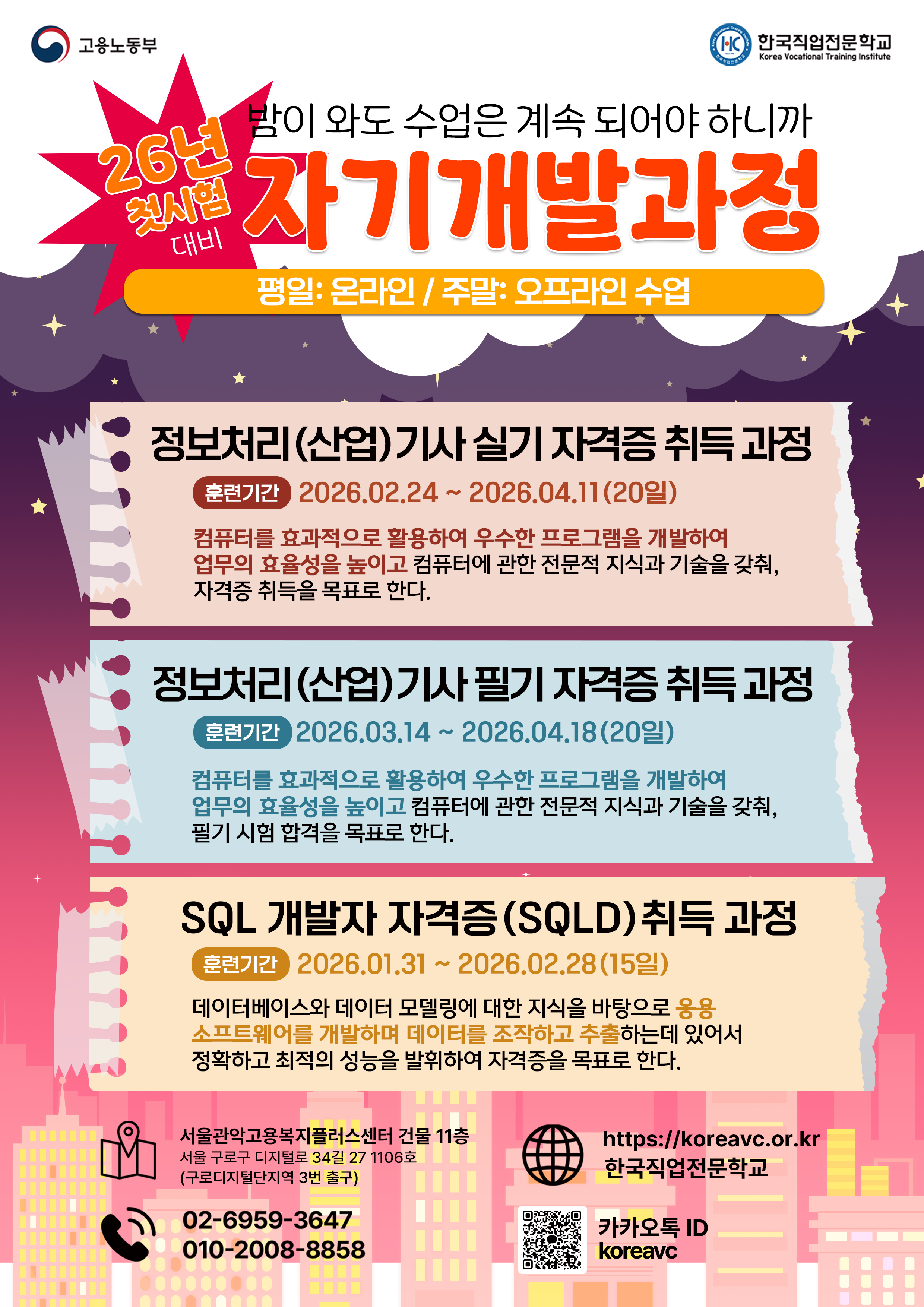 재직자를 위한 IT 자격증 교육 과정을 안내드립니다.