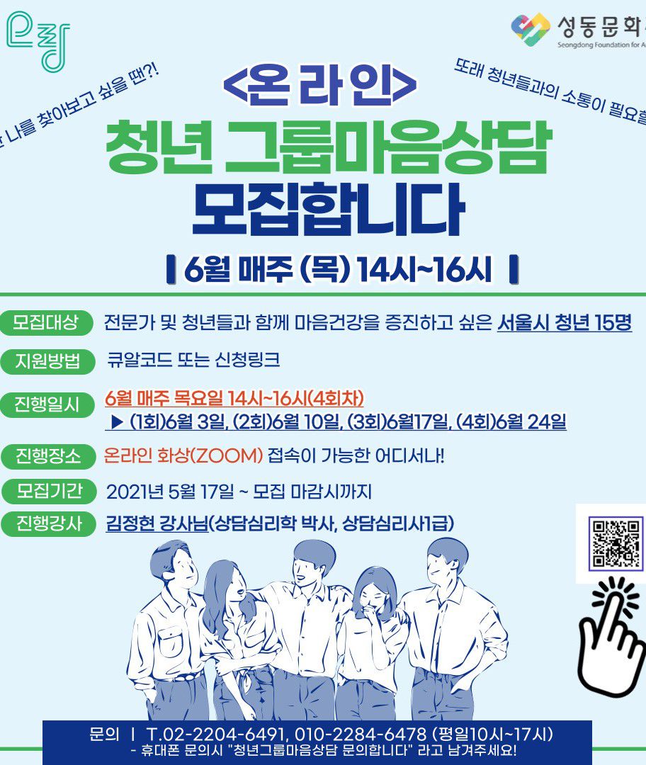 서울시 청년이라면 누구나! 청년그룹마음상담을 신청할 수 있습니다 :-)