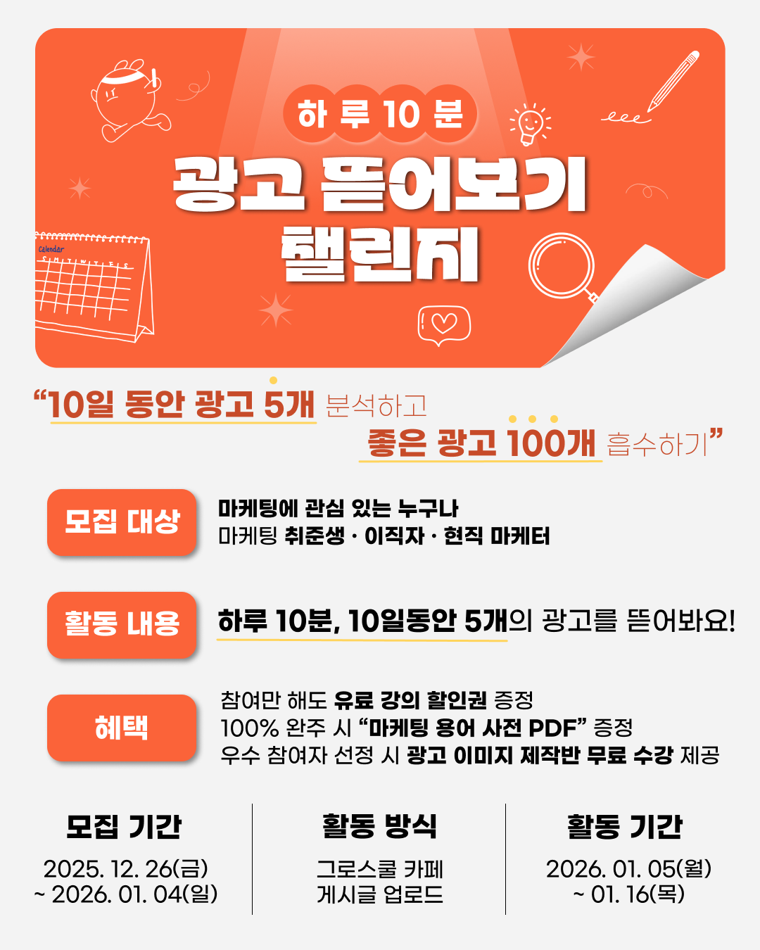 "하루 10분 광고 뜯어보기 챌린지 1기"를 시작으로 2026년 새해 힘차게 달려봐요 😉