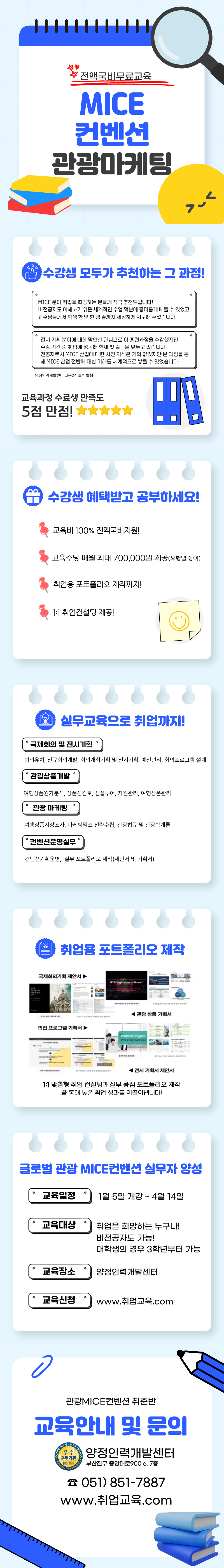 🚨이제는, 관광·MICE컨벤션 전문가로 양정인력개발센터에서 시작하세요!