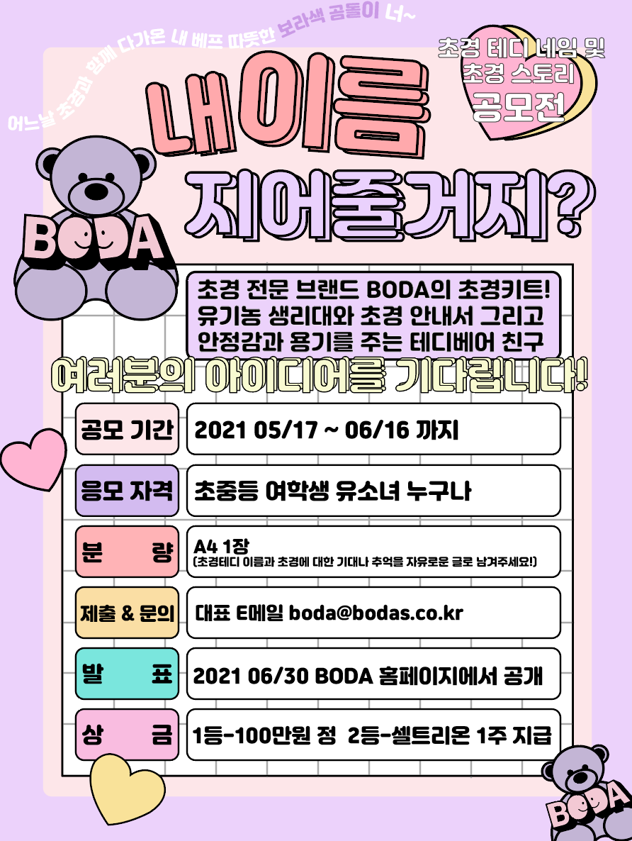 제목: 초경 테디 네임&히스토리 + 초경 스토리 공모전