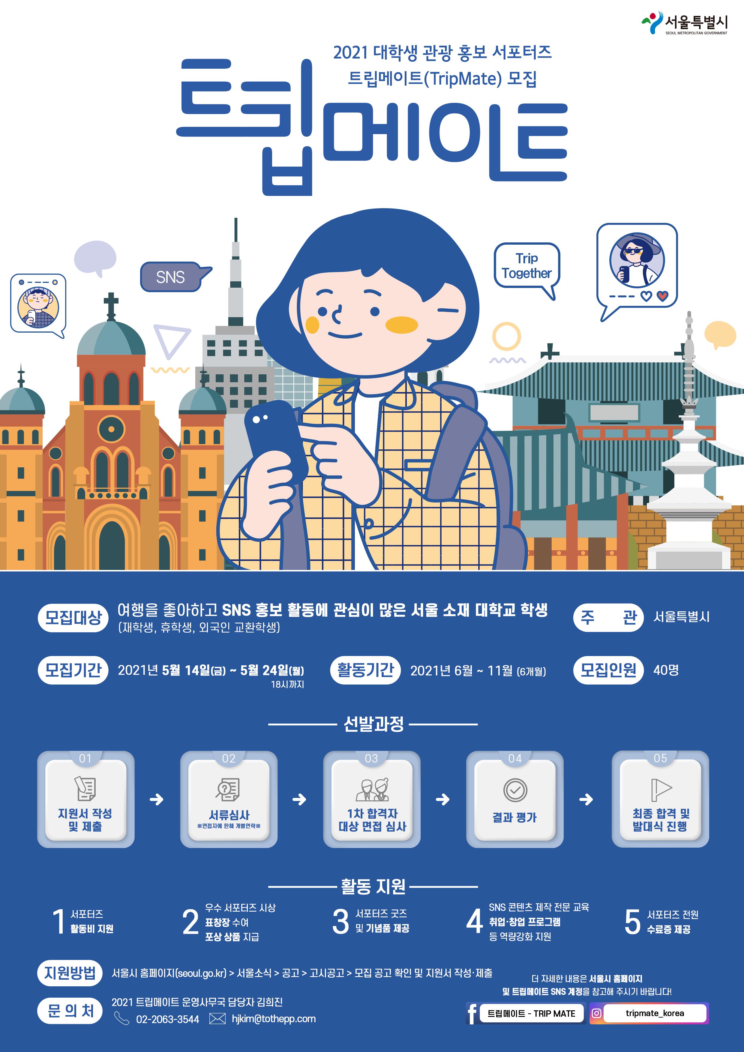 ○ 모집 대상 : 여행을 좋아하고 SNS 홍보활동에 관심이 많은 서울 소재 대학생(재학생, 휴학생, 외국인 교환학생)