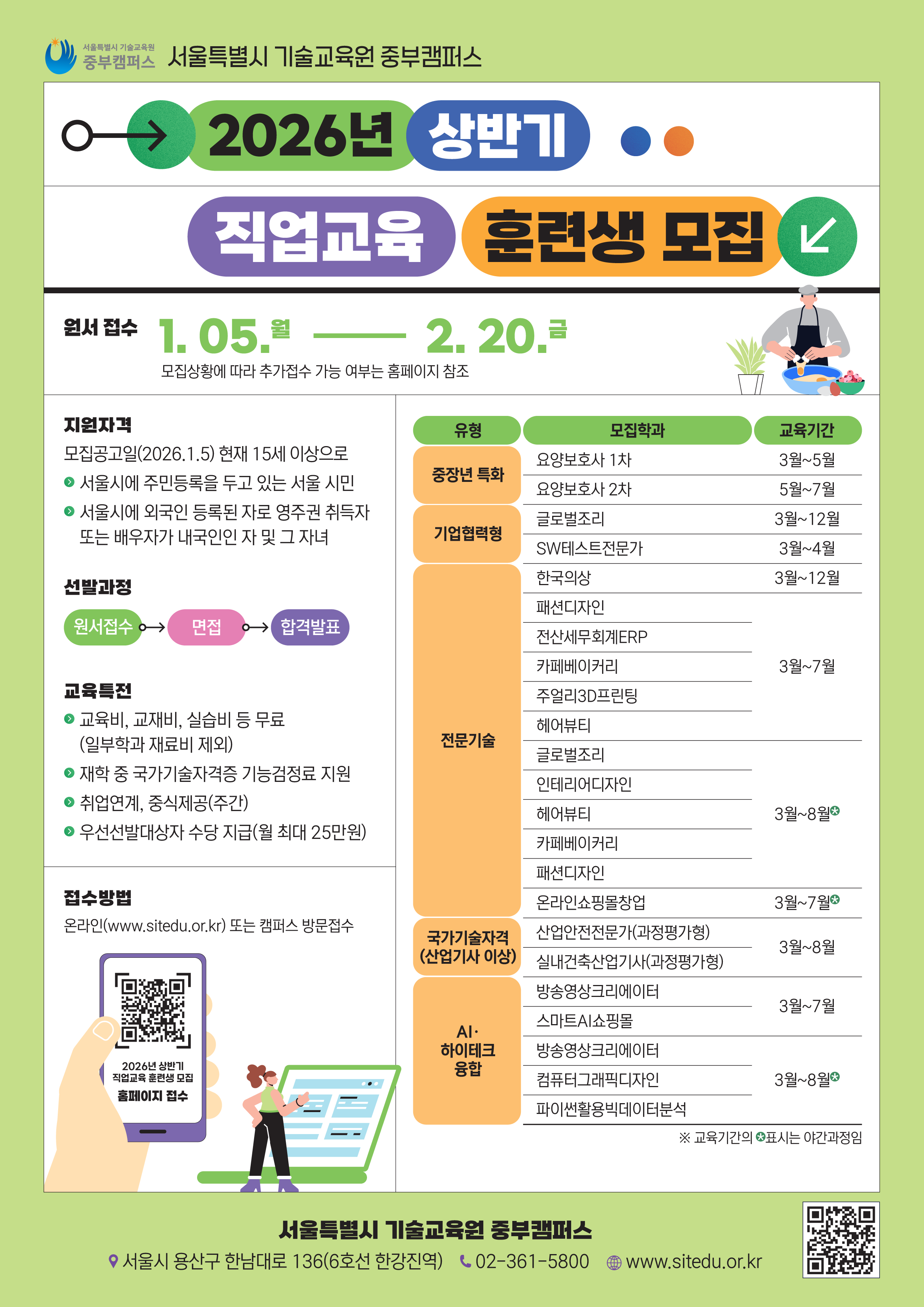 ❍ 모 집 명 : 2026년 상반기 직업교육 훈련생 모집