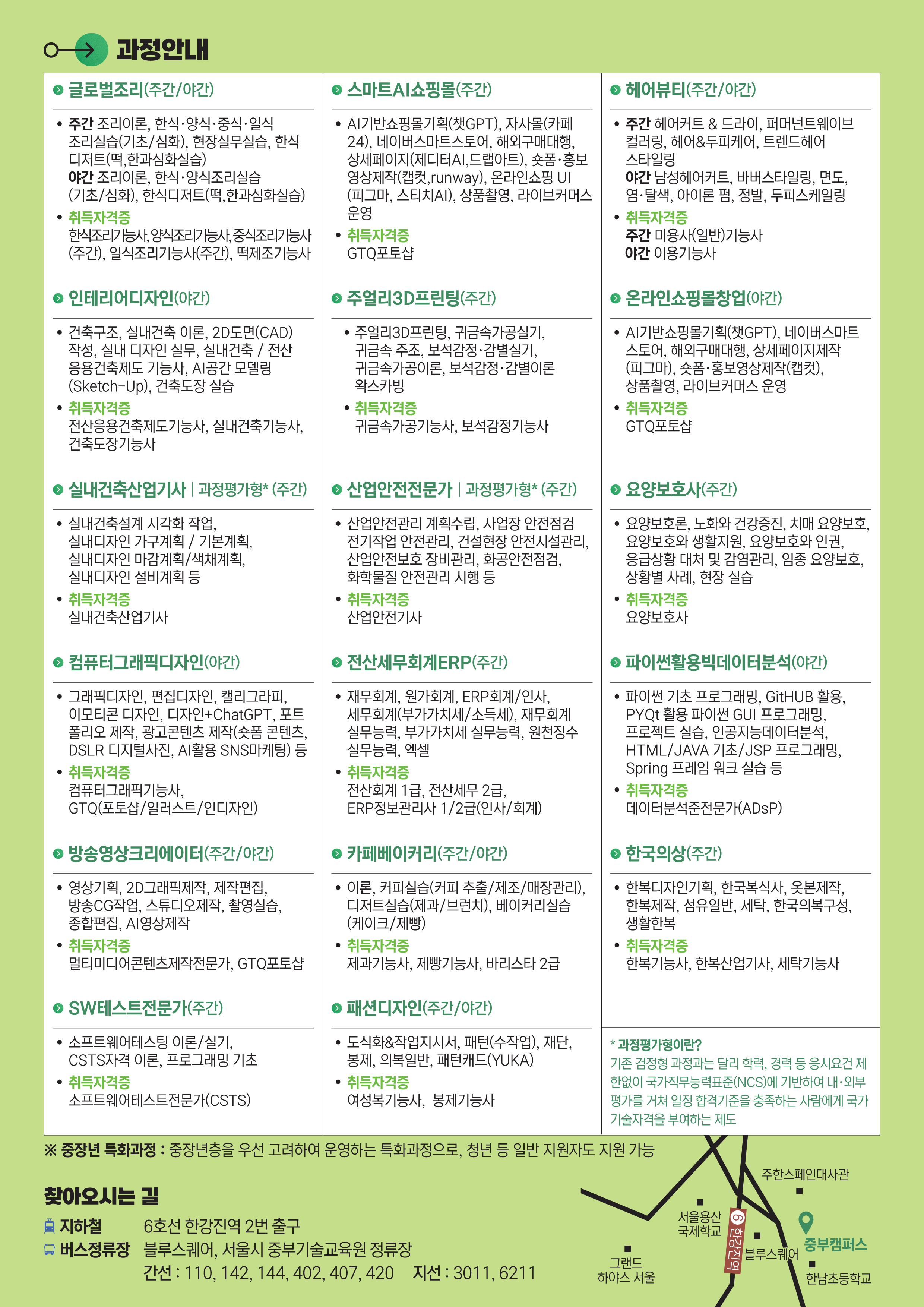 - 교육비, 교재비, 재료비 무료(일부학과 재료비 제외)
