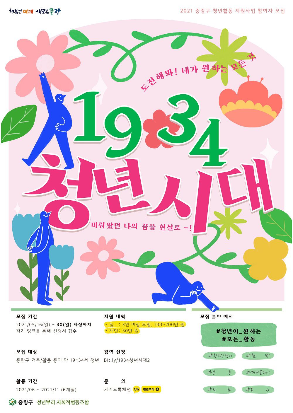 2021 중랑구 청년활동지원사업 <1934 청년시대> 시즌 2 참여자를 모집합니다.