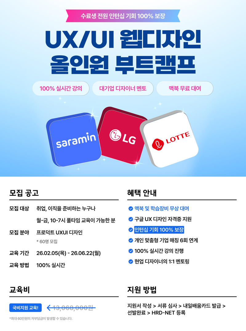 🎨 실무 경험 + 인턴십 + 커리어 연계로 디자이너 취업까지 완성하세요!