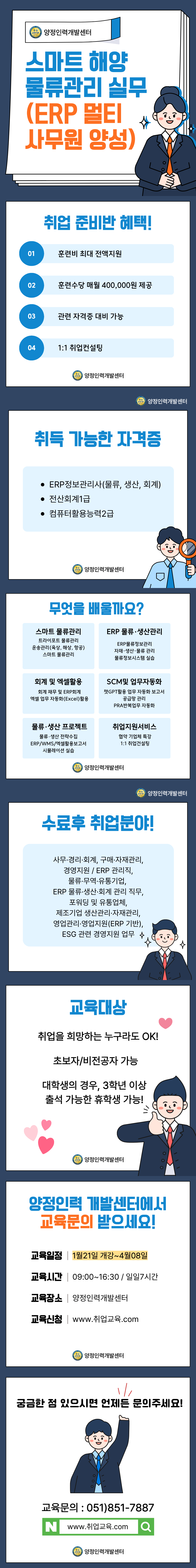 - 과정명 : 스마트 해양 물류관리 실무(ERP멀티사무원 양성)
