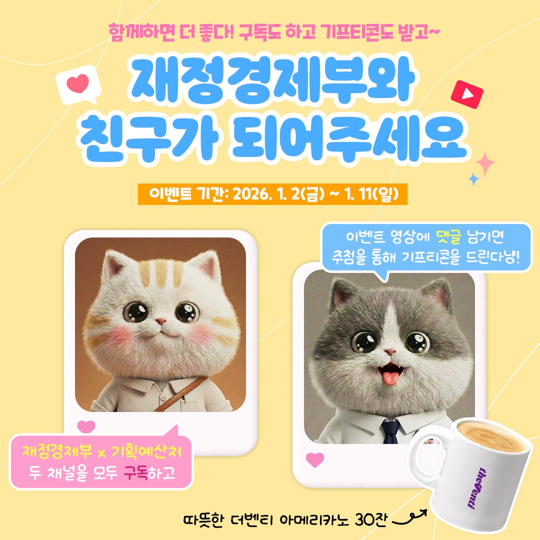 구독 정보 공개 설정 후 재정경제부와 기획예산처의 친구가 되어주신 분들 중 추첨을 통해 선물을 드립니다!