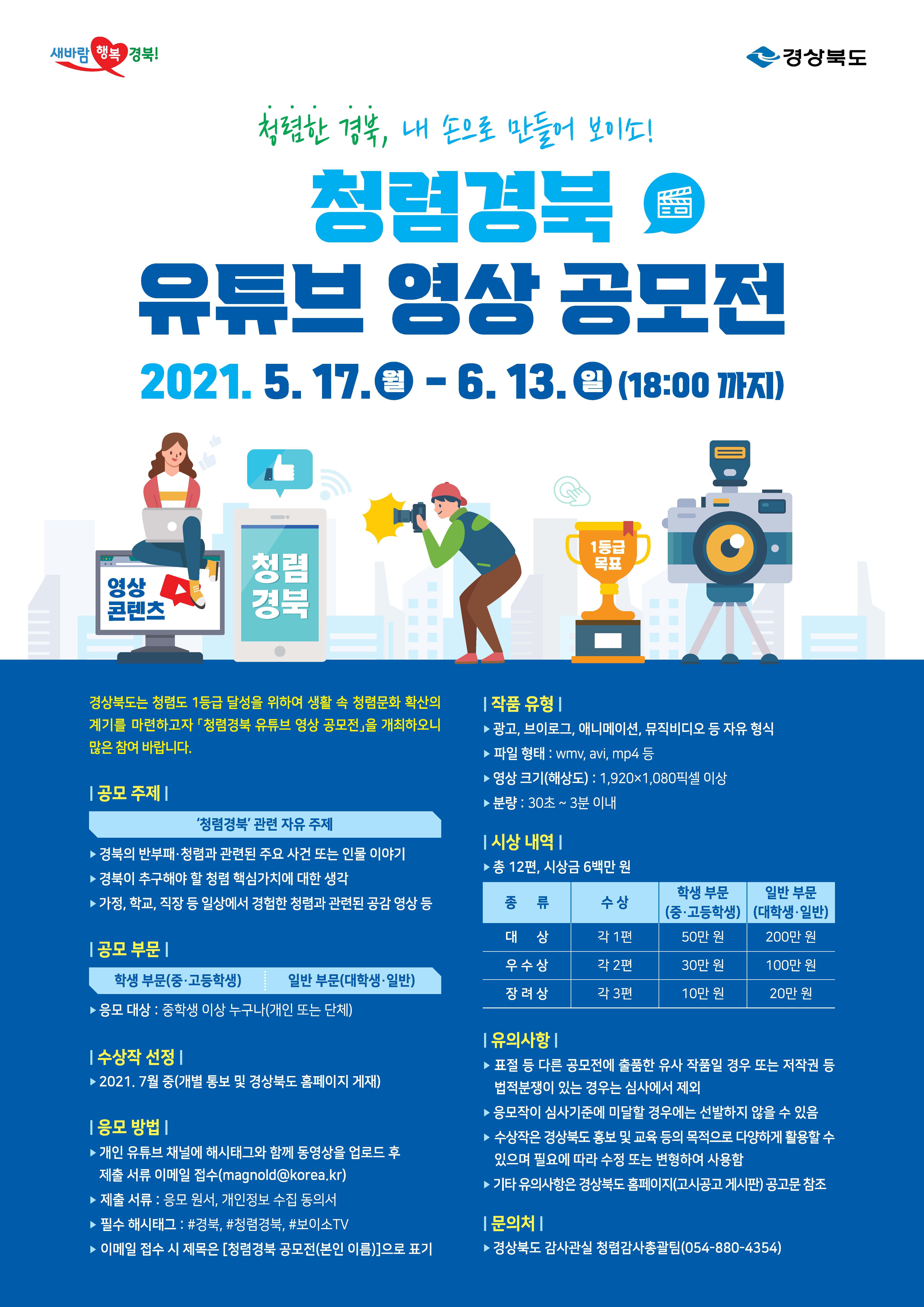 1. 공 모 명 : 청렴경북 유튜브 영상 공모전