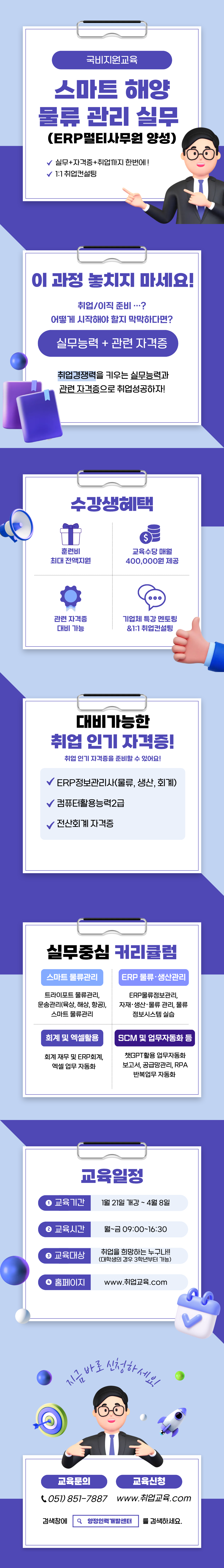 - 과정명 : 스마트 해양 물류관리 실무(ERP멀티사무원 양성)