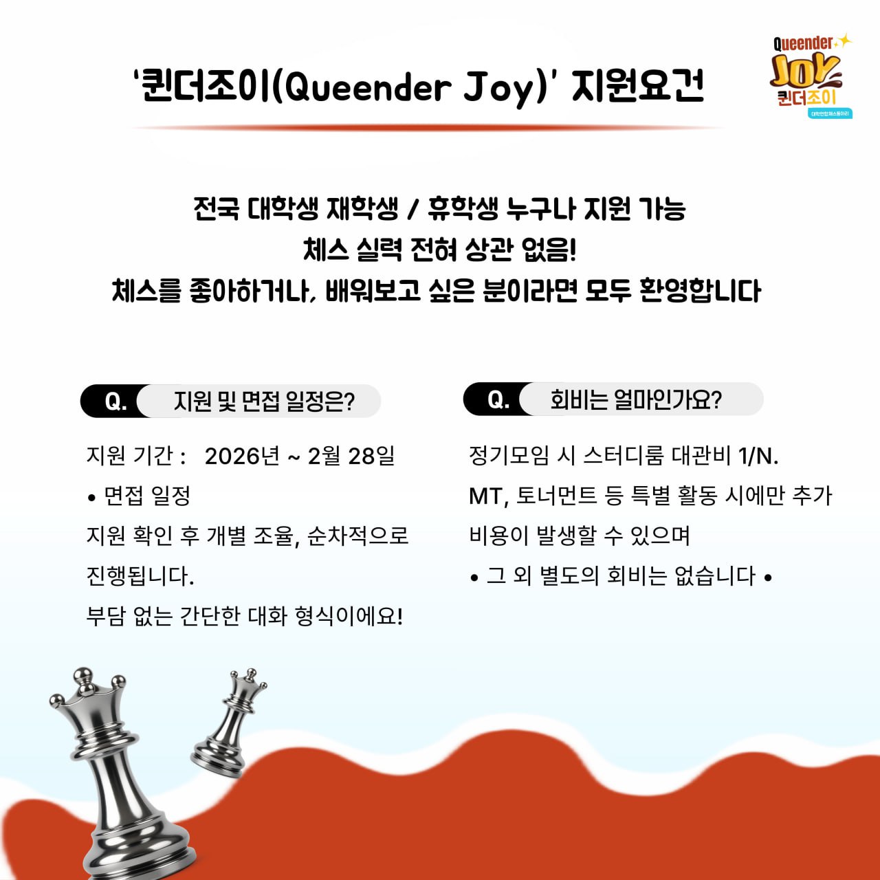 ♟ 대학연합 체스동아리 ‘퀸더조이(Queender Joy)’ 신입부원 모집 ♟