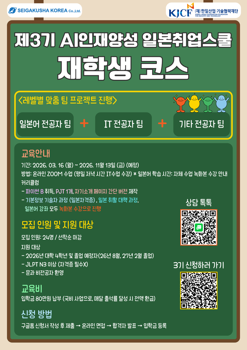AI 인재양성 일본취업스쿨의 3기 모집 안내