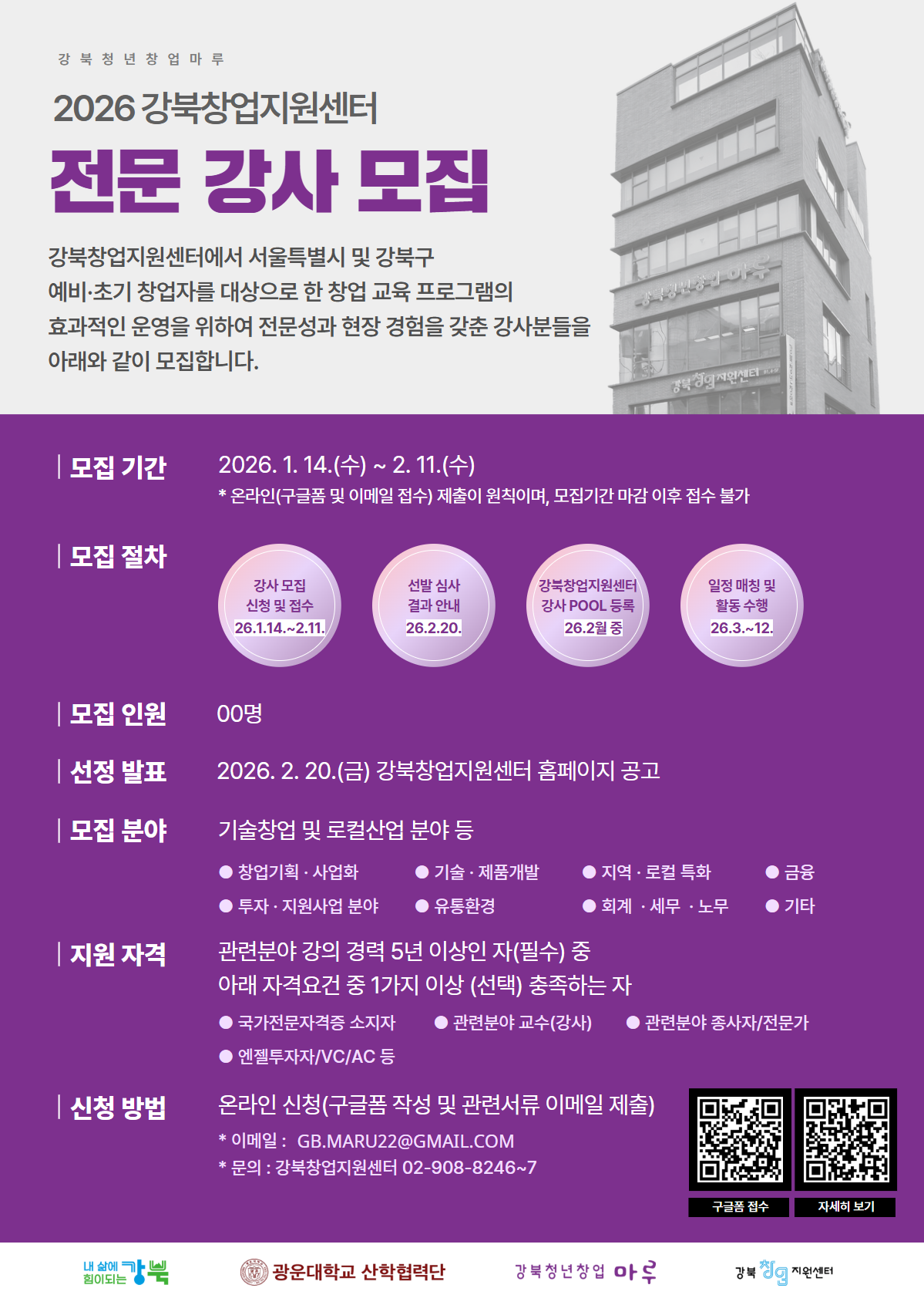 「2026년 강북청년창업마루 창업 강사·멘토」를 모집합니다.