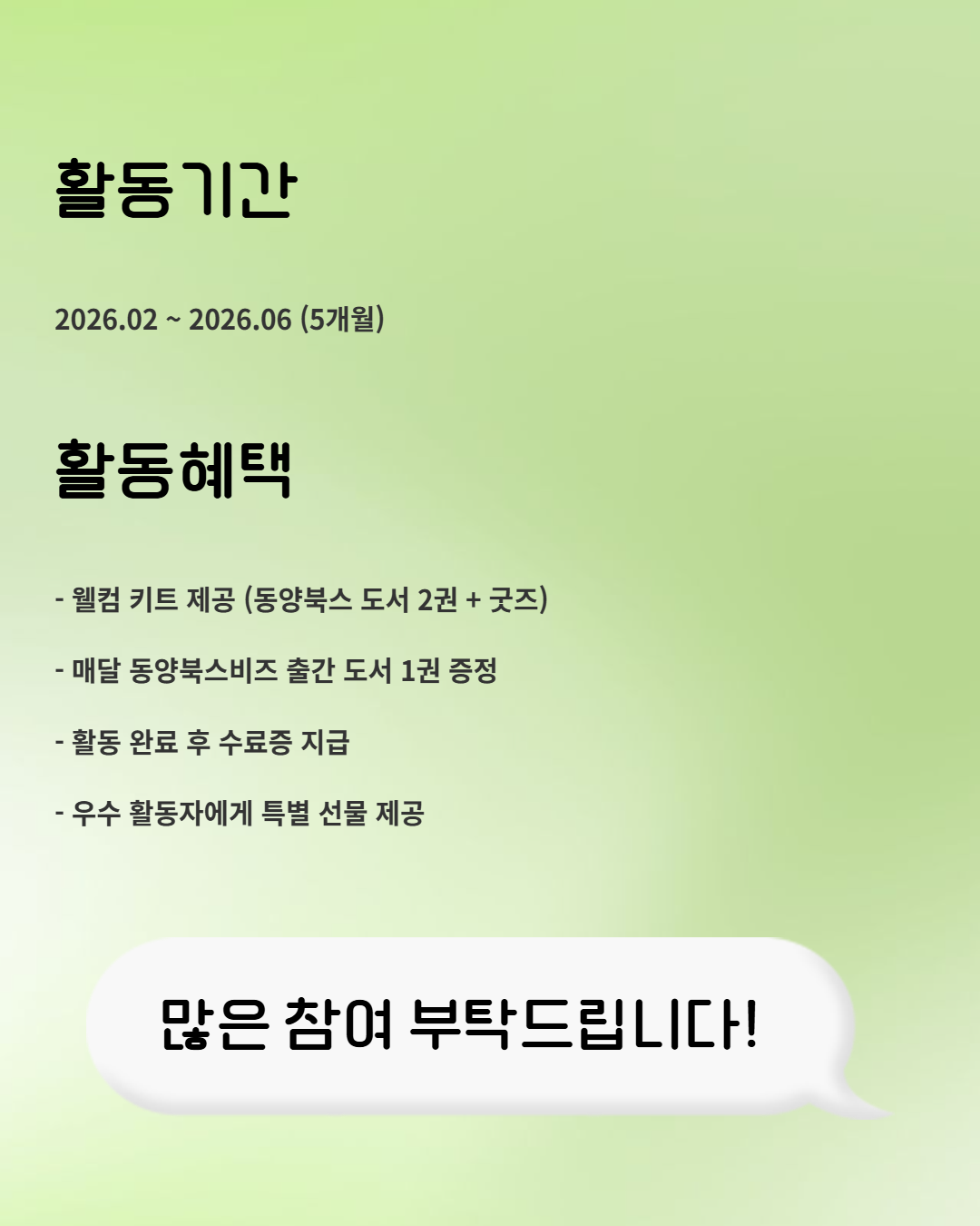 - 활동기간 : 2026년 3월 ~ 12월 (월 2회, 토요일 활동)