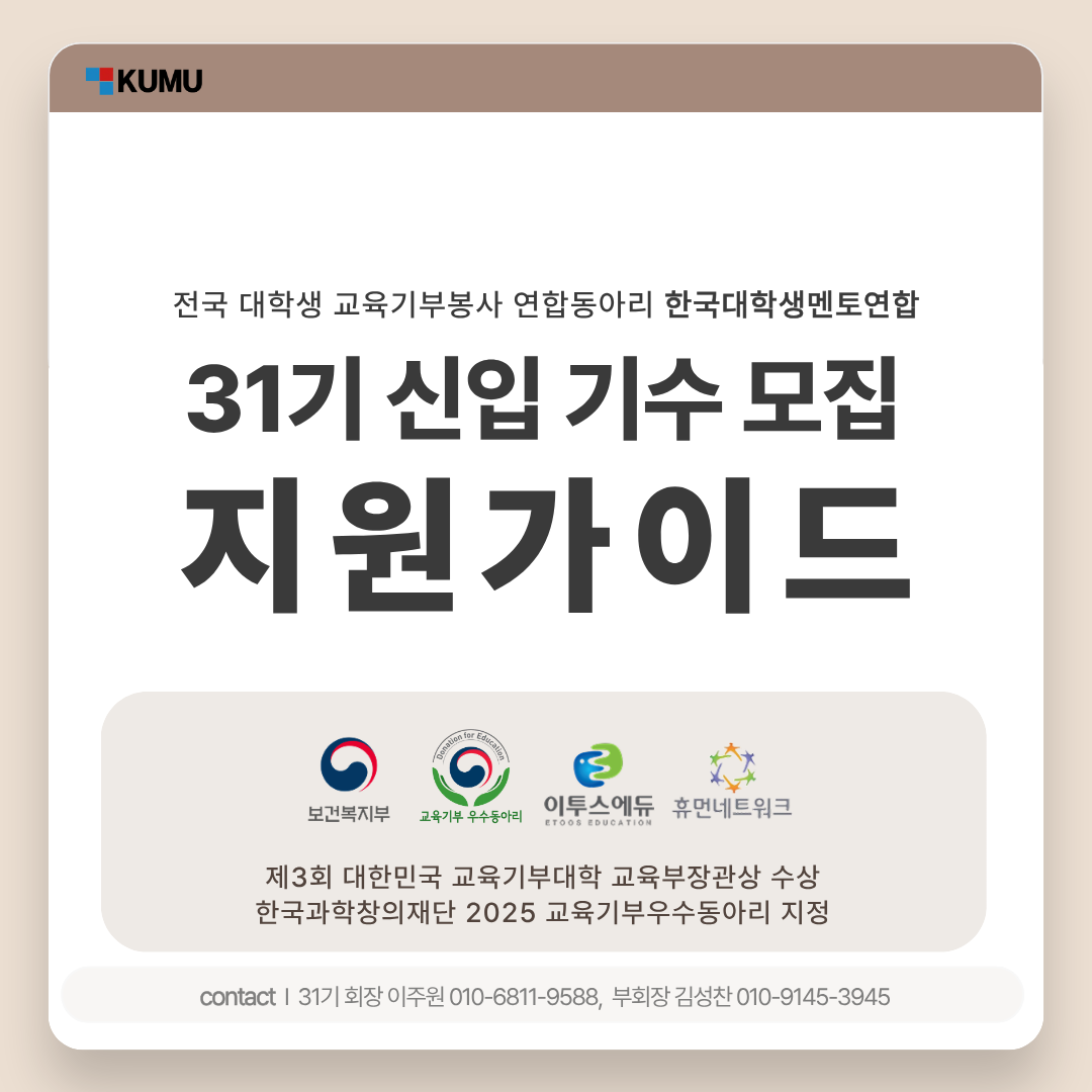 🏫 한국대학생멘토연합(KUMU) 31기 신입 기수 모집 👩🏻🏫
