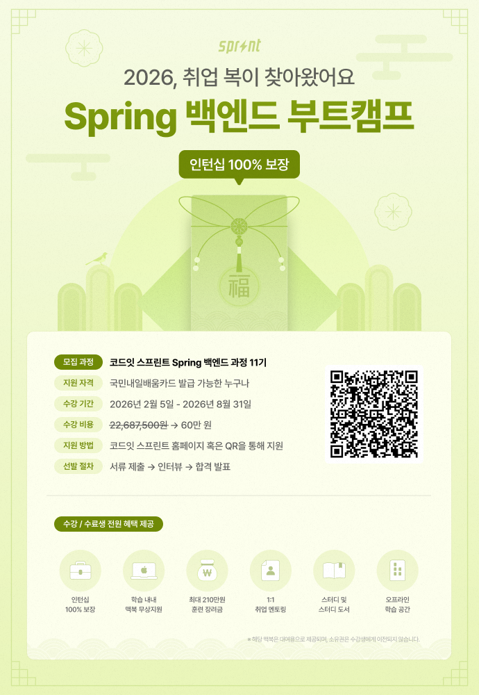 Spring 백엔드 부트캠프 모집 중 ➡️ https://code.it/6LAEMV5