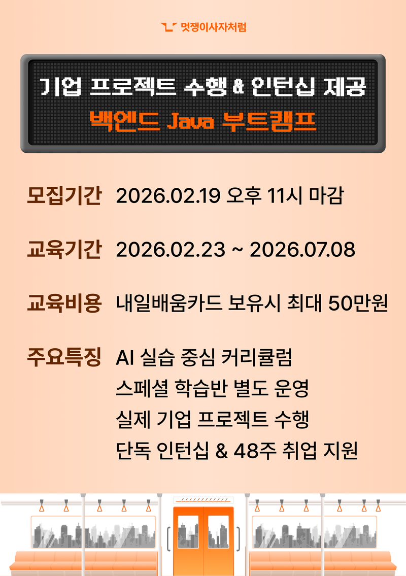 - AI 시대에 살아남는 백엔드 Java 개발자 양성을 위한 국비지원 IT 부트캠프 교육