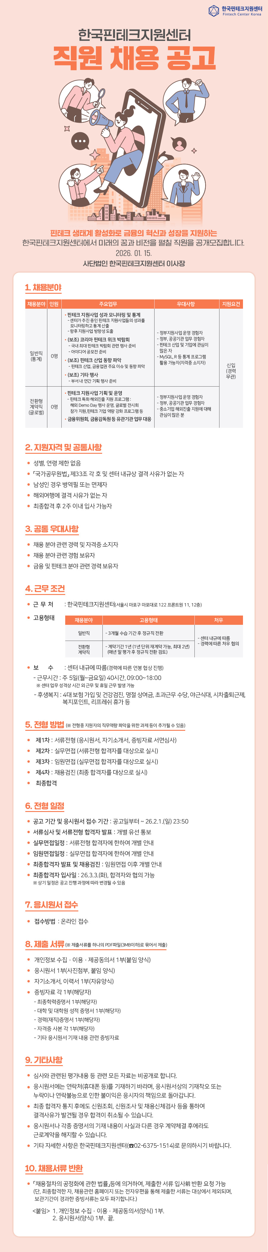 ✔️ 채용분야 : 일반직(통계) - 핀테크 지원사업 성과 모니터링 및 통계, 보조 업무