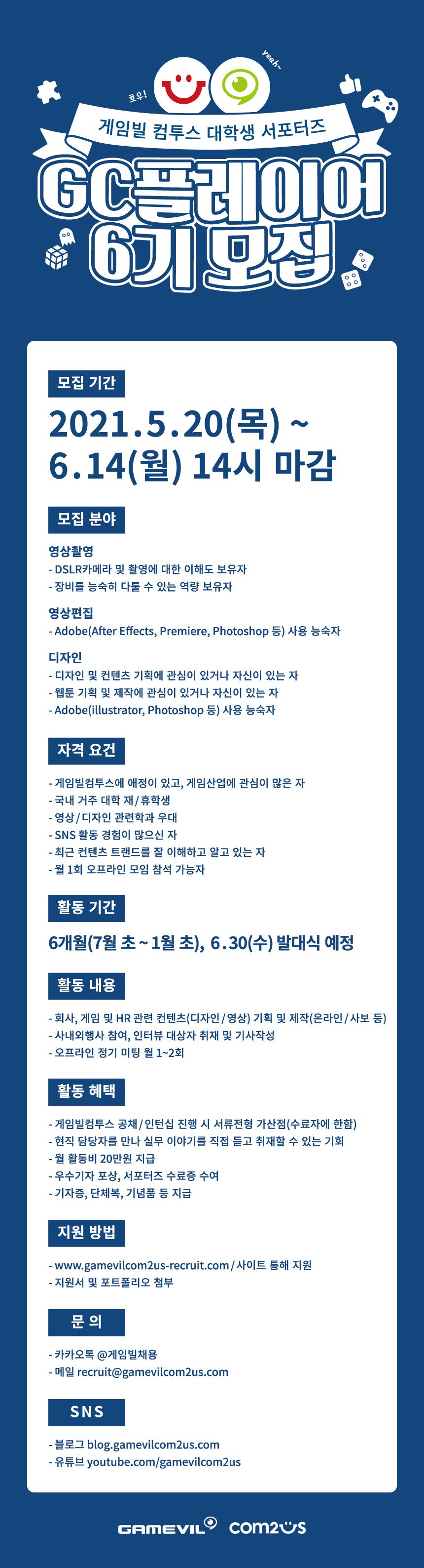 게임빌컴투스 대학생 서포터즈 GC플레이어 6기 모집