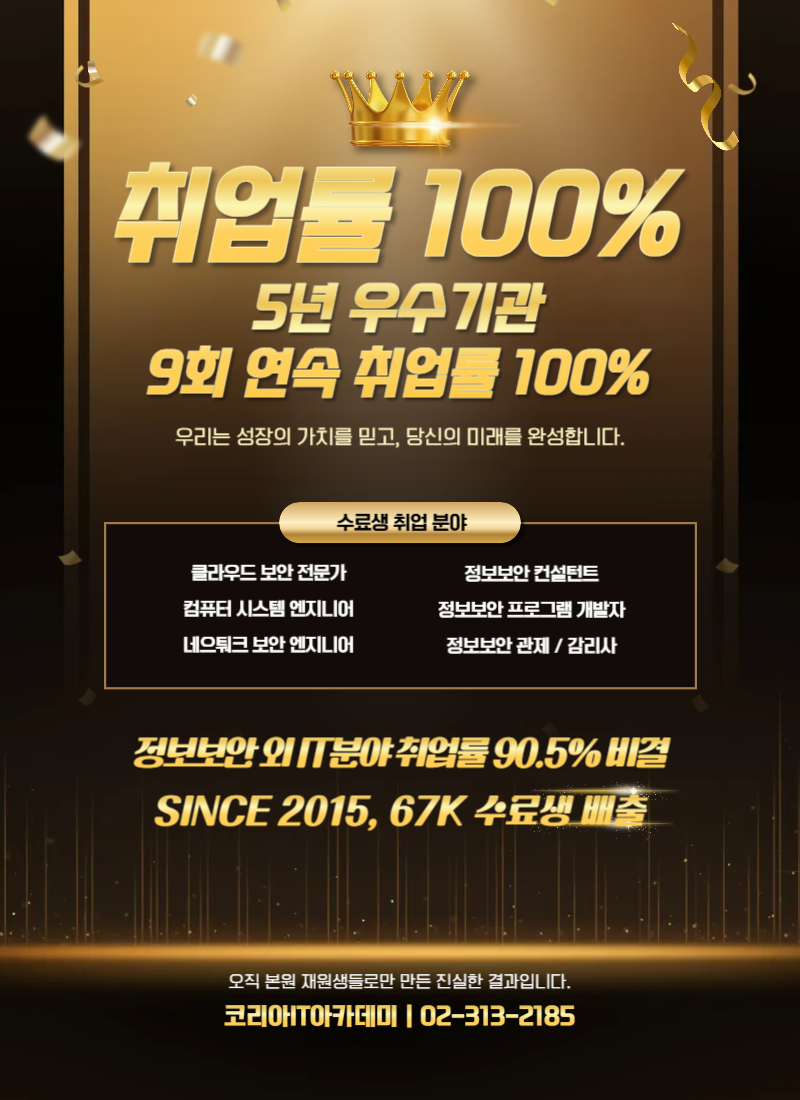 실무 중심의 포괄적 보안 역량 확보 네트워크(NW), 시스템, 데이터베이스(DB) 보안 구축부터 애플리케이션 보안 운영까지 전 영역을 아우르는 기술 습득.