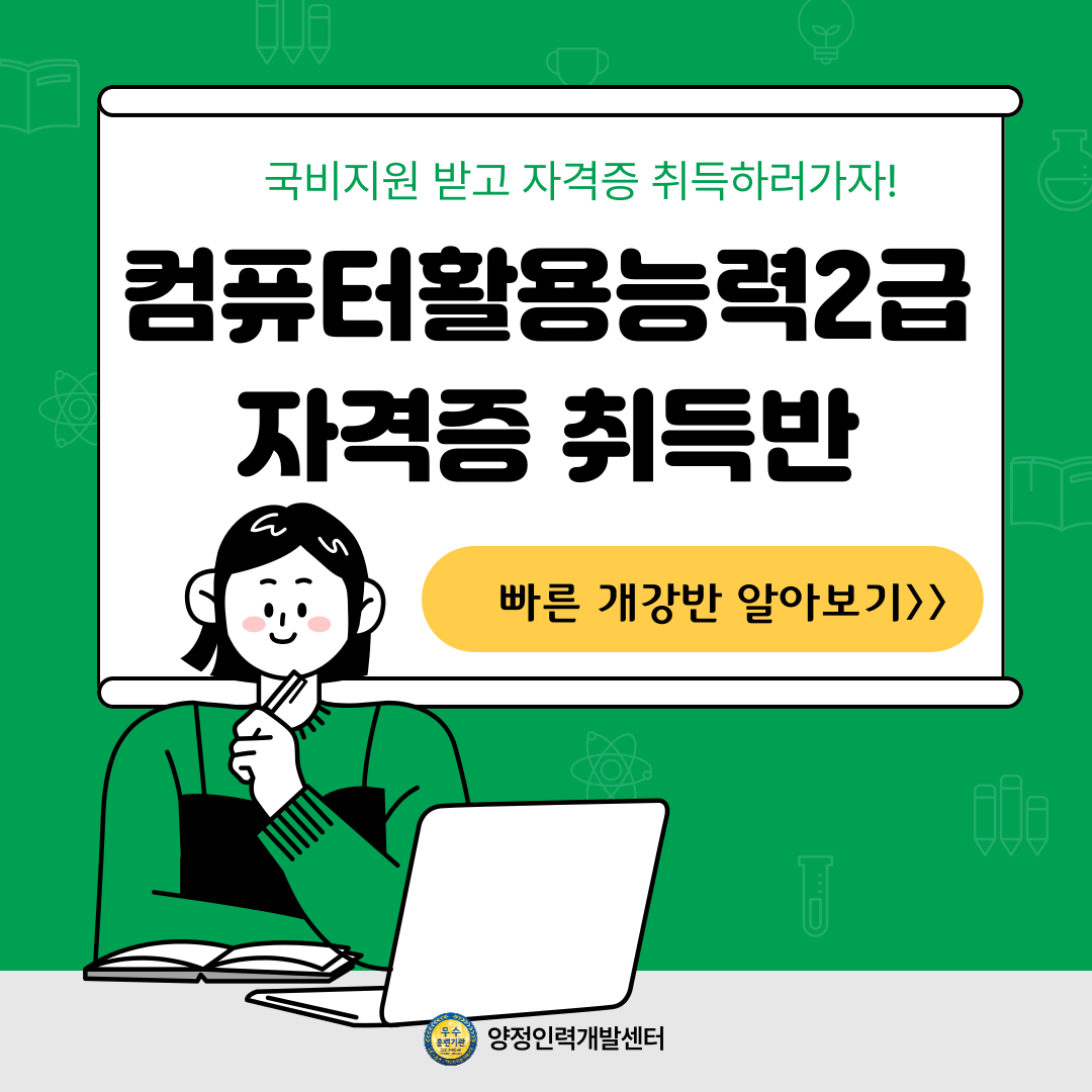 [국비지원/20일 완성] 컴퓨터활용능력2급 자격증 단기취득반(필기/실기)