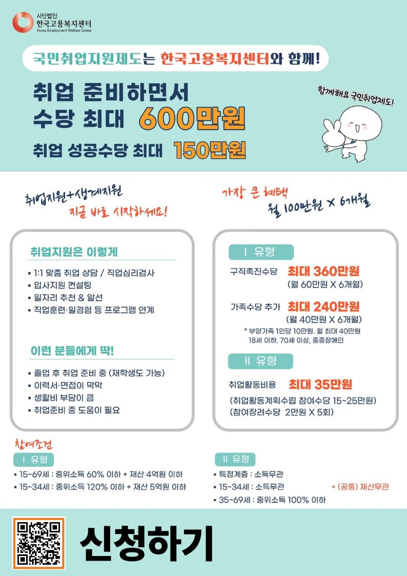 → 2유형 : 취업활동계획수립 참여수당(15~25만원), 참여장려수당(2만원 X 5회)