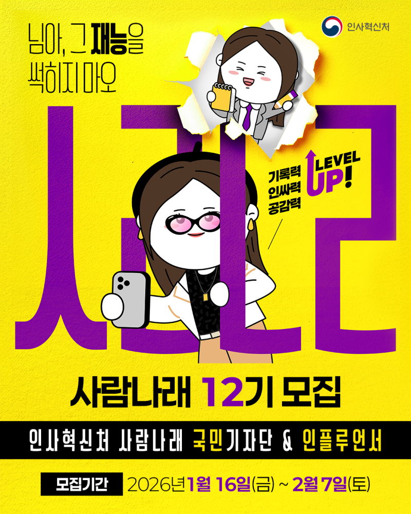 2026년 인사혁신처 사람나래 12기 국민기자단&인플루언서를 모집합니다!