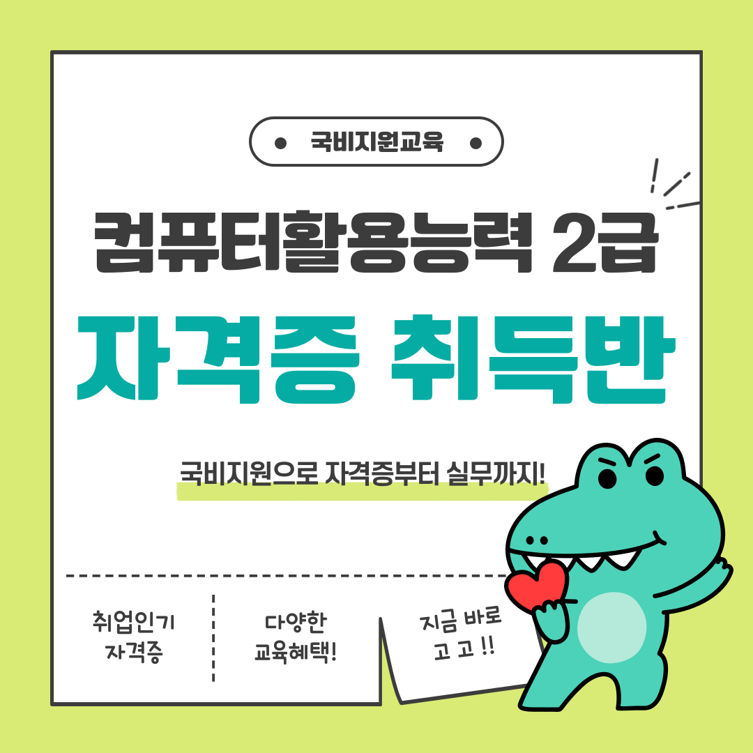[국비지원/20일 완성] 컴퓨터활용능력2급 자격증 단기취득반(필기/실기)