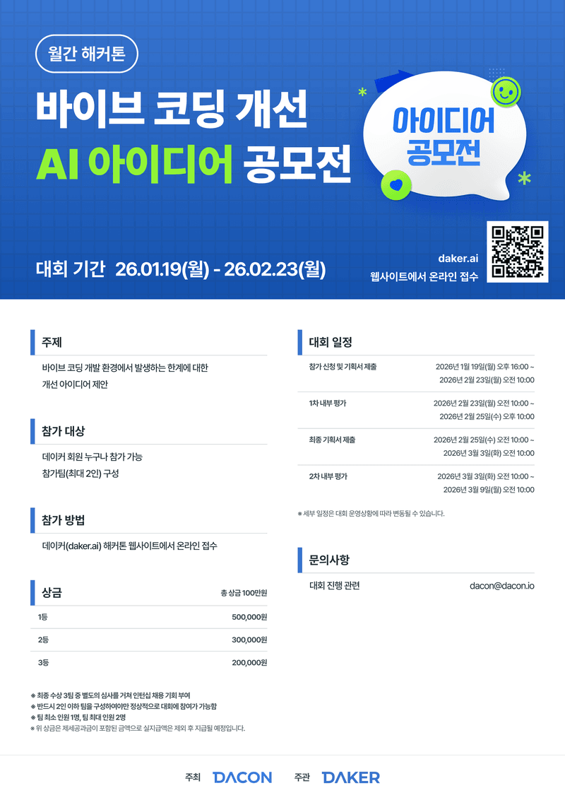 대회 홈페이지 (https://daker.ai/public/hackathons/vibe-coding-improvement-ai-idea-competition) 참고