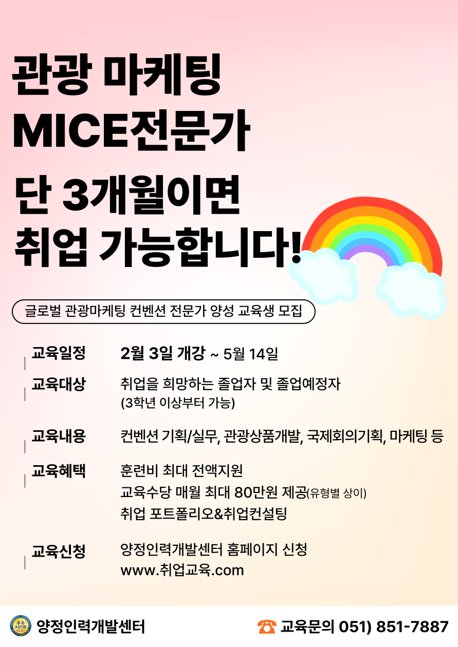 🚨이제는, 관광·MICE컨벤션 전문가로 양정인력개발센터에서 시작하세요!