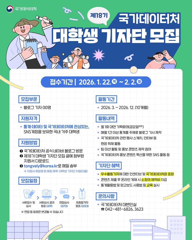 2026년 제18기 국가데이터처 대학생 기자단에 도전하세요!